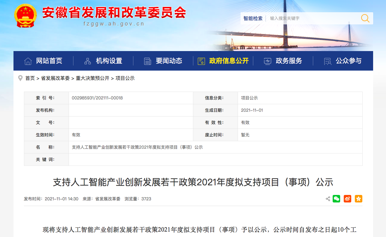 日前,安徽省發(fā)展和改革委員會公布了“支持人工智能產(chǎn)業(yè)創(chuàng)新發(fā)展若干政策2021年度支持項目”。
