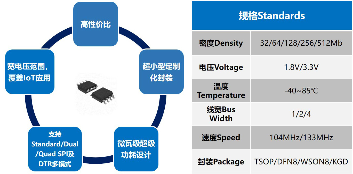 NM25LQ128A | 1.7V~2.0V | 128Mbit | Standard/Dual/Quad SPI DPI QPI DTR |